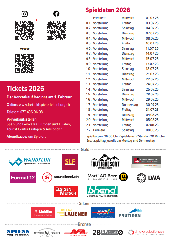 Die Aufführungen des Freilichttheaters Tellenburg erzählt mit Humor, Spannung und Emotionen, wie Adelboden diese turbulente Zeit erlebt - und welche Chancen, Konflikte und Liebesgeschichten daraus entstehen.