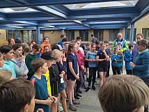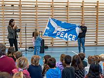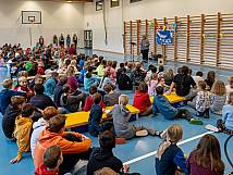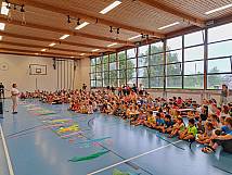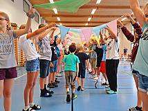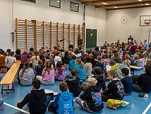 Es war einfach nur eindrücklich! Mit allen Klassen inkl. Kindergarten versammelten wir uns in der alten Turnhalle zum Startschuss des Themas "Peacemaker". Dabei haben wir alle zusammen den Song "Be a light" gesungen. Am Ende haben alle Kinder beim Ausgang eine schöne Sommerblume erhalten.