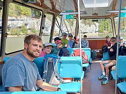 Es gab ein Picknick zum Zmittag, und dann ging es weiter mit dem Zug. Beim Lac des Brenets fuhren wir mit einem Boot über den See. Wir liefen zu einem Wasserfall, dem „Saut du Doubs“. Dann spazierten wir über eine Brücke auf die französische Seite des Wasserfalls. Für zwei von uns war es das erste Mal im Ausland.