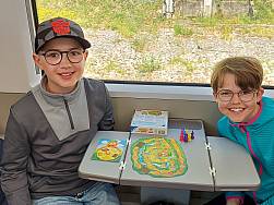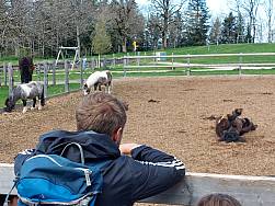 Wir sind heute um 9 Uhr mit dem Zug von Frutigen nach Bern losgefahren und von Bern nach la Chaux–de–Fonds und von dort nach les Bois. Dort durften wir Picknick essen und auf dem Spielplatz vom Maison Rouge spielen. Danach durften wir Pferde, Ponys und Esel anschauen. Ein Pony hatte nur ein Auge. Danach haben wir sogar einen Pferdeschädel gesehen. Anschliessend sind wir von les Bois nach la Chaux d´Abel gefahren. Heute ist der erste Tag und am Abend essen wir alle miteinander Spaghetti Bolognese. Wir freuen uns alle. Nach dem Essen spielen wir mit Remo „Räuber und Polä.“