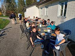 Heute sind die Jungs sehr früh aufgewacht und haben Fangis im Haus gespielt. Dann kam eine Lehrperson, und die Jungs mussten wieder still in ihre Zimmer gehen. Danach haben wir gefrühstückt. Es war sehr lecker. Anschließend haben wir frische Brötchen für unser Picknick eingepackt.